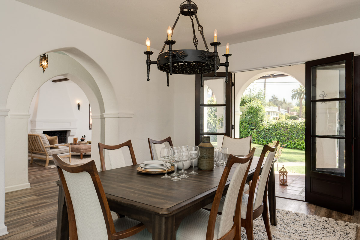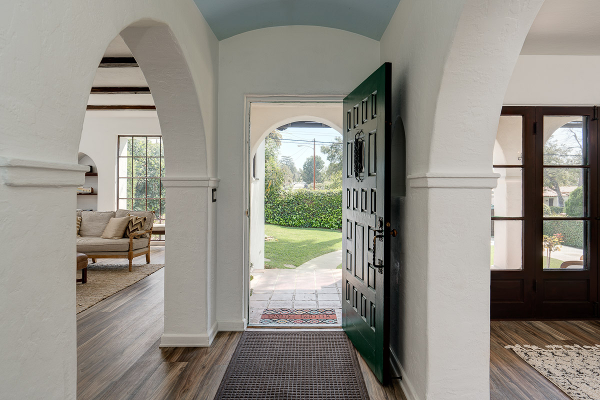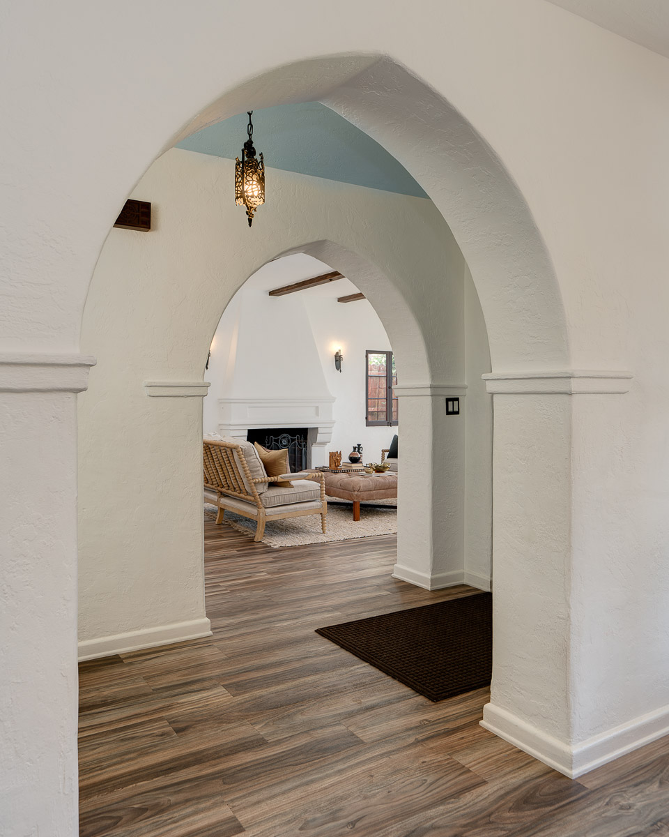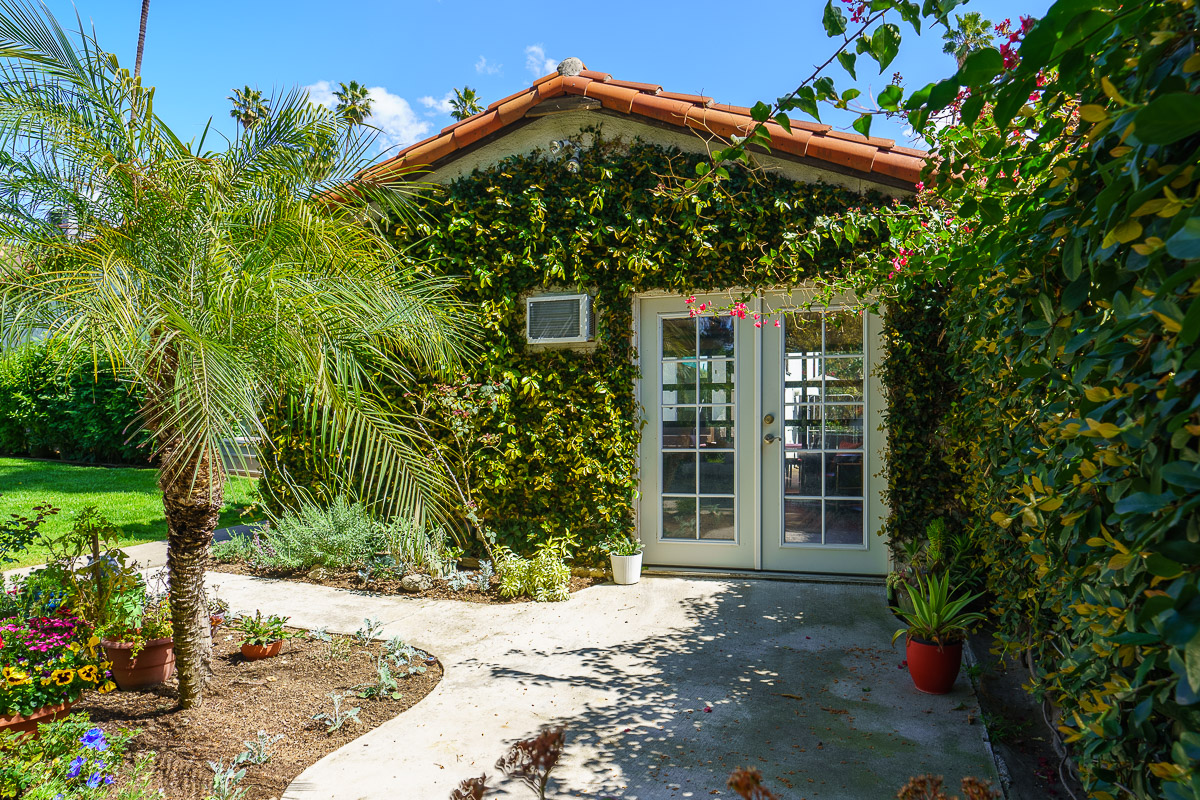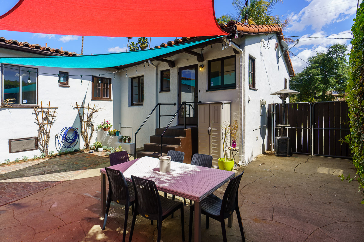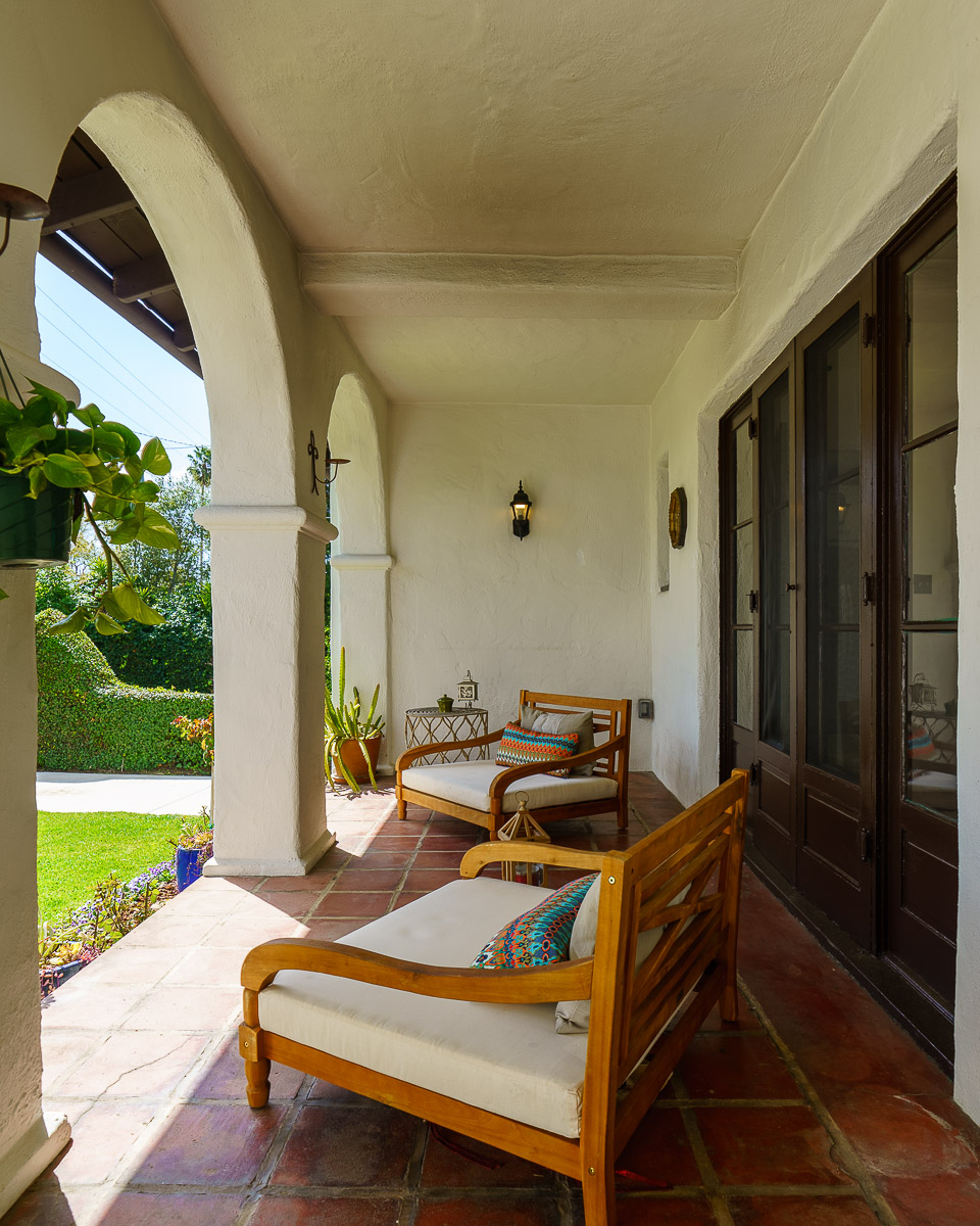 Welcome to this beautiful three bedroom, three bath gated 1928 Spanish Revival with a fantastic bonus workspace in the converted garage. The 1695 square foot house (measured) sits behind a tall private hedge and invites you in with its elegance and grace. The home has incredible character details throughout starting with the expansive living room, with rich hand-hewn beams, that has a center, tall picture window framed by niched, custom built-ins. In addition, there is a light-filled formal dining room, a beautifully remodeled kitchen with glass fronted cabinetry and stainless steel appliances as well as three well-appointed bedrooms at the back of the house, including a luxurious master suite. The property is filled with old-world, architectural elements including period wrought iron fixtures, tall Moorish arched doorways, hand crafted Saltillo tile, a stately fireplace and much more.