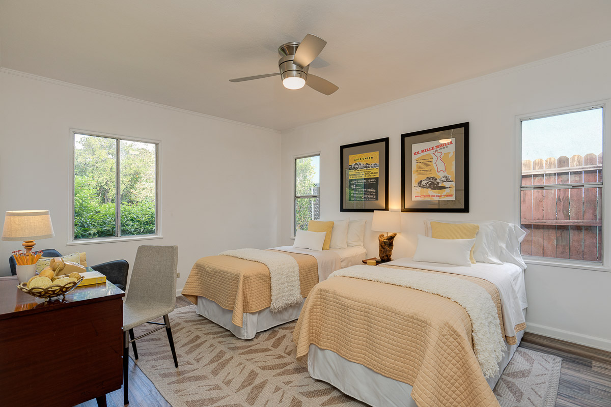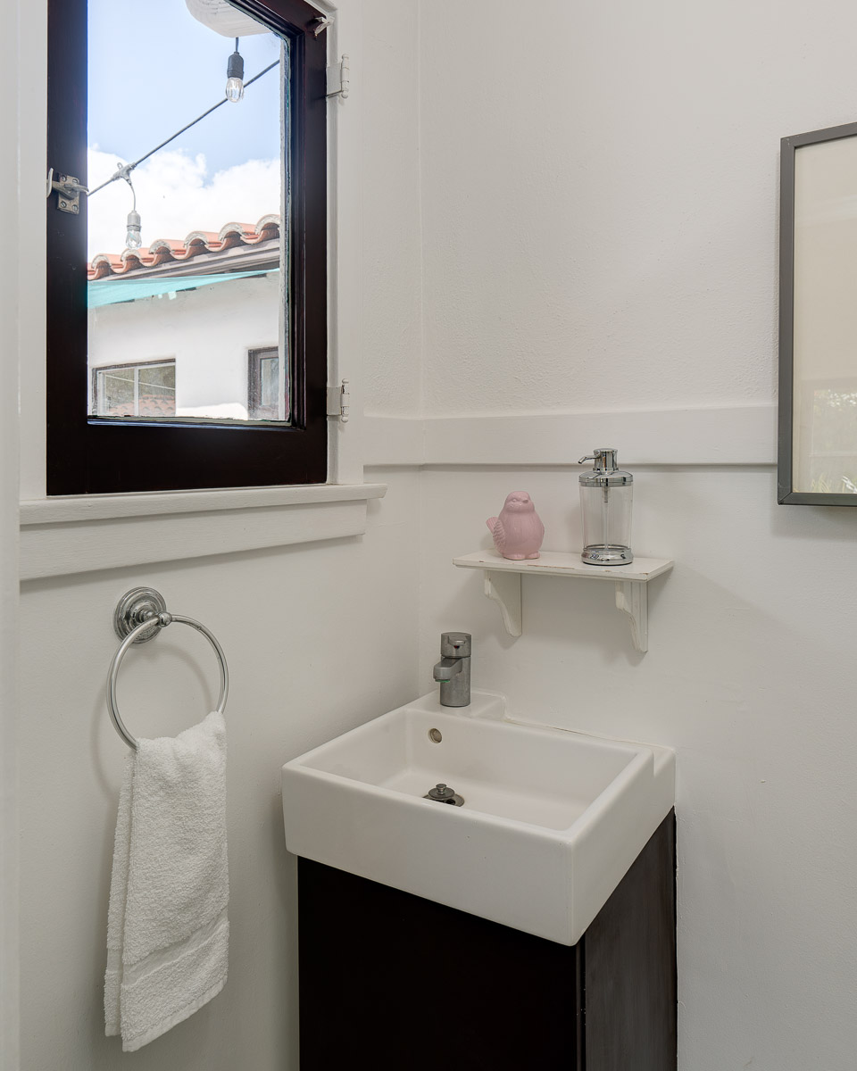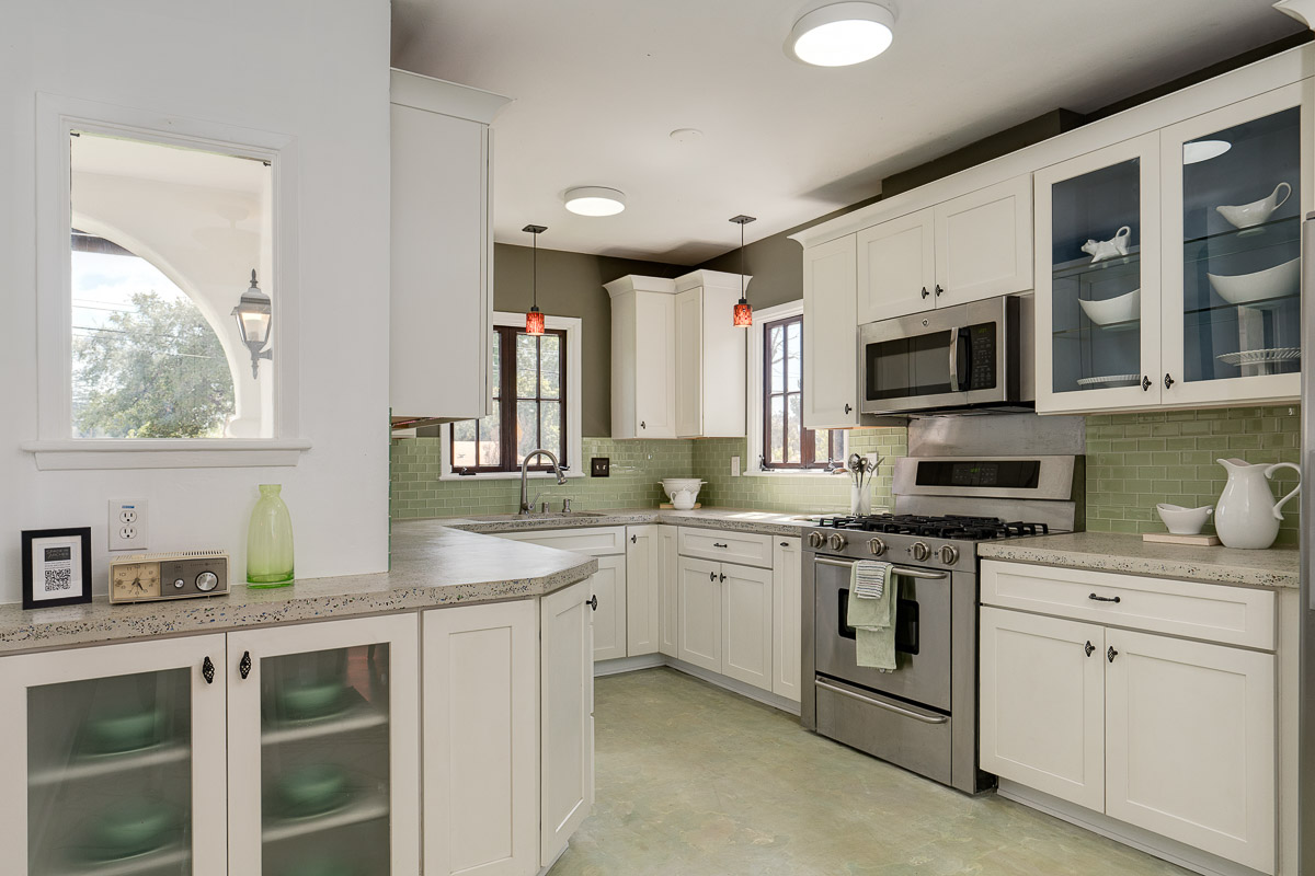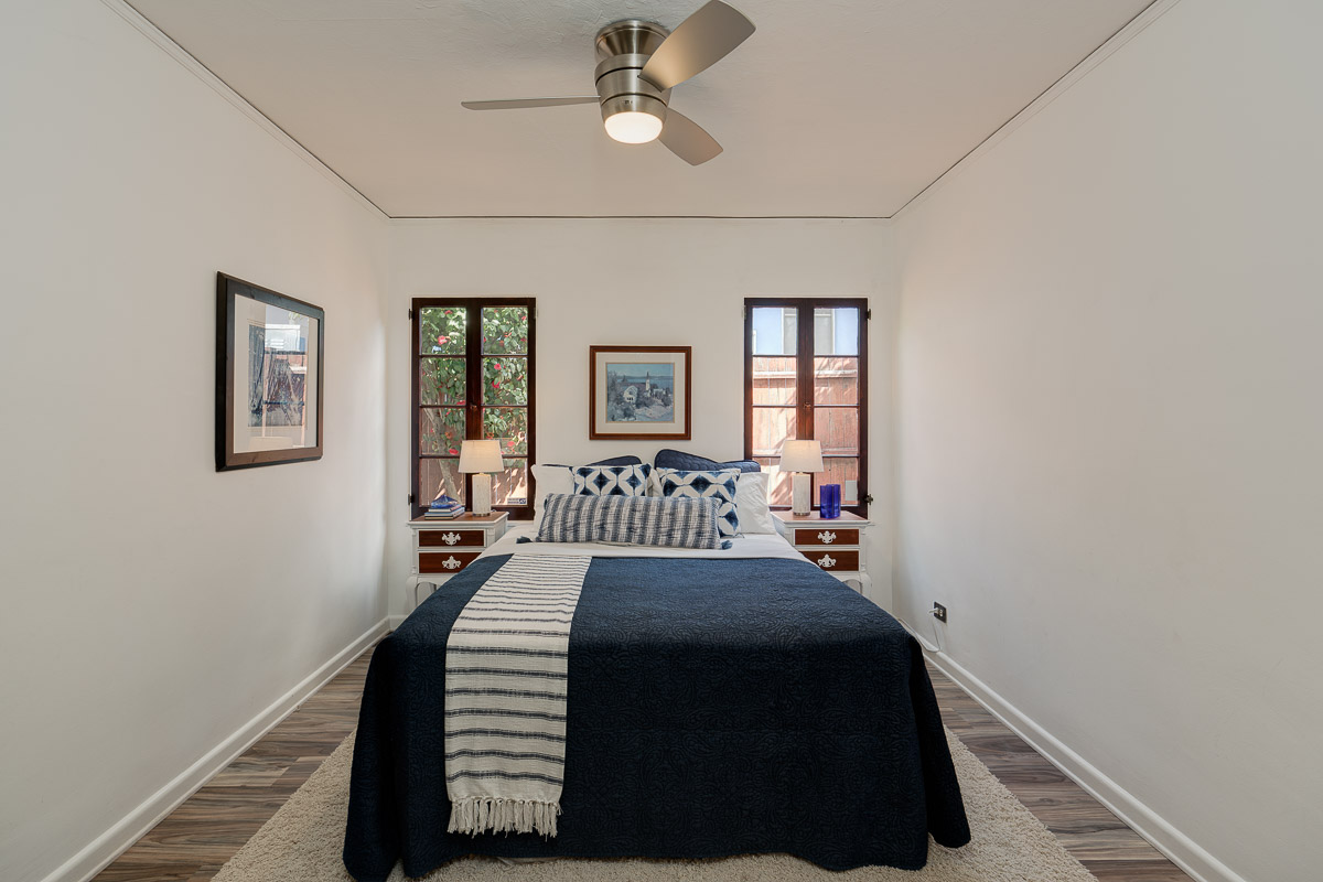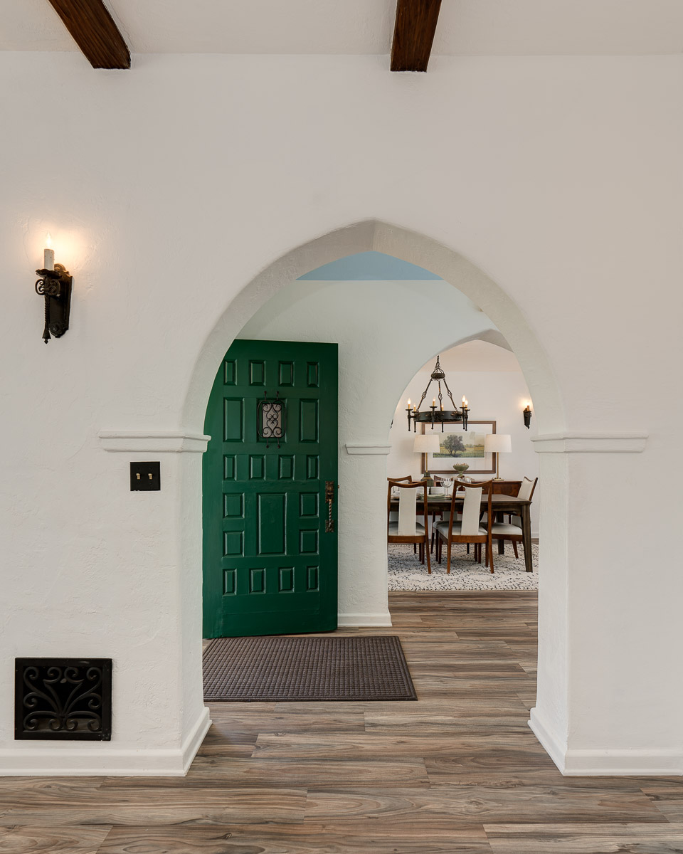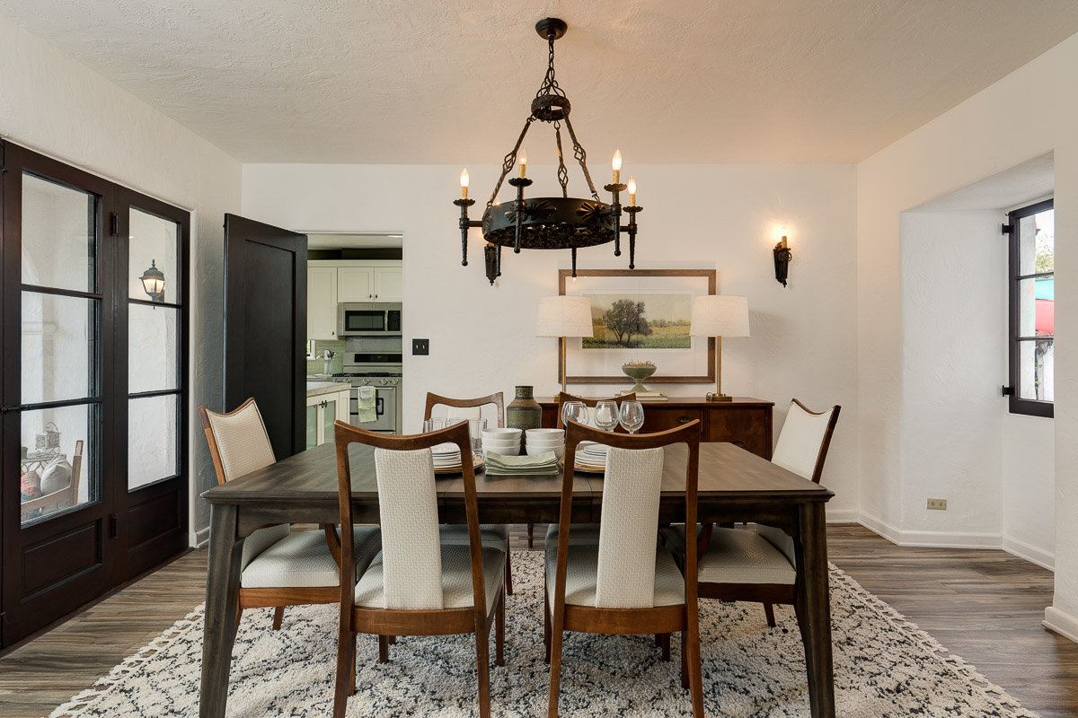 Welcome to this beautiful three bedroom, three bath gated 1928 Spanish Revival with a fantastic bonus workspace in the converted garage. The 1695 square foot house (measured) sits behind a tall private hedge and invites you in with its elegance and grace. The home has incredible character details throughout starting with the expansive living room, with rich hand-hewn beams, that has a center, tall picture window framed by niched, custom built-ins. In addition, there is a light-filled formal dining room, a beautifully remodeled kitchen with glass fronted cabinetry and stainless steel appliances as well as three well-appointed bedrooms at the back of the house, including a luxurious master suite. The property is filled with old-world, architectural elements including period wrought iron fixtures, tall Moorish arched doorways, hand crafted Saltillo tile, a stately fireplace and much more.