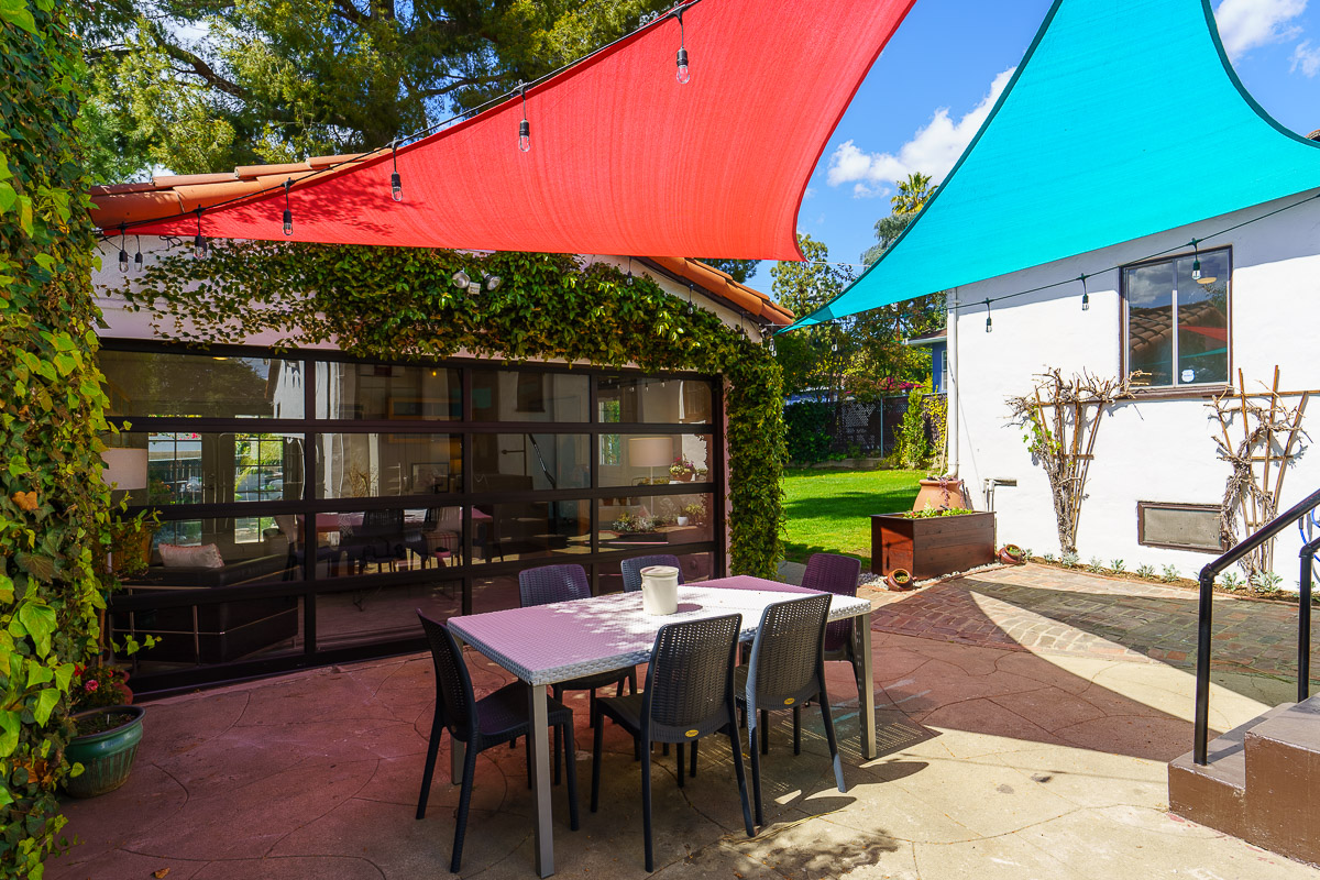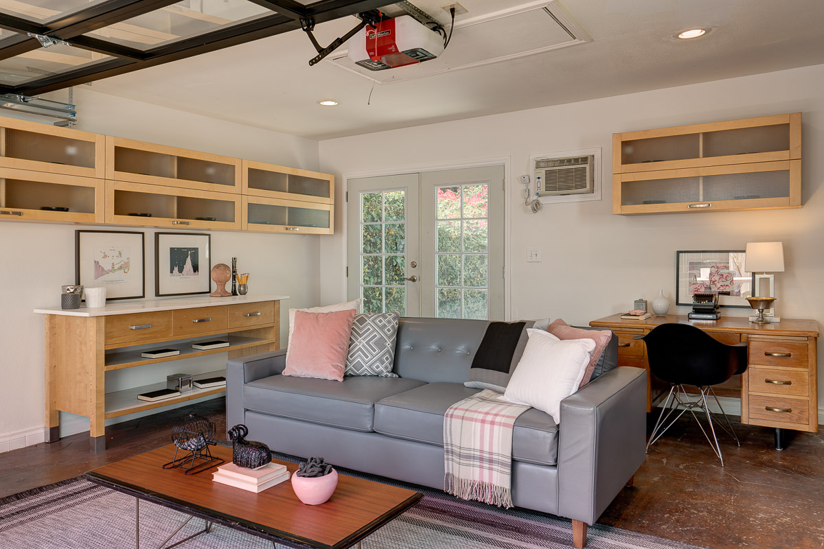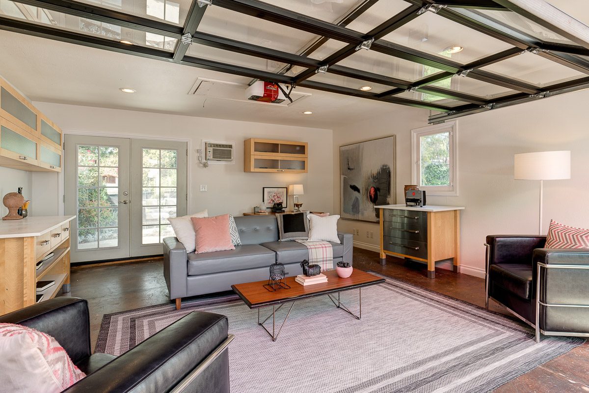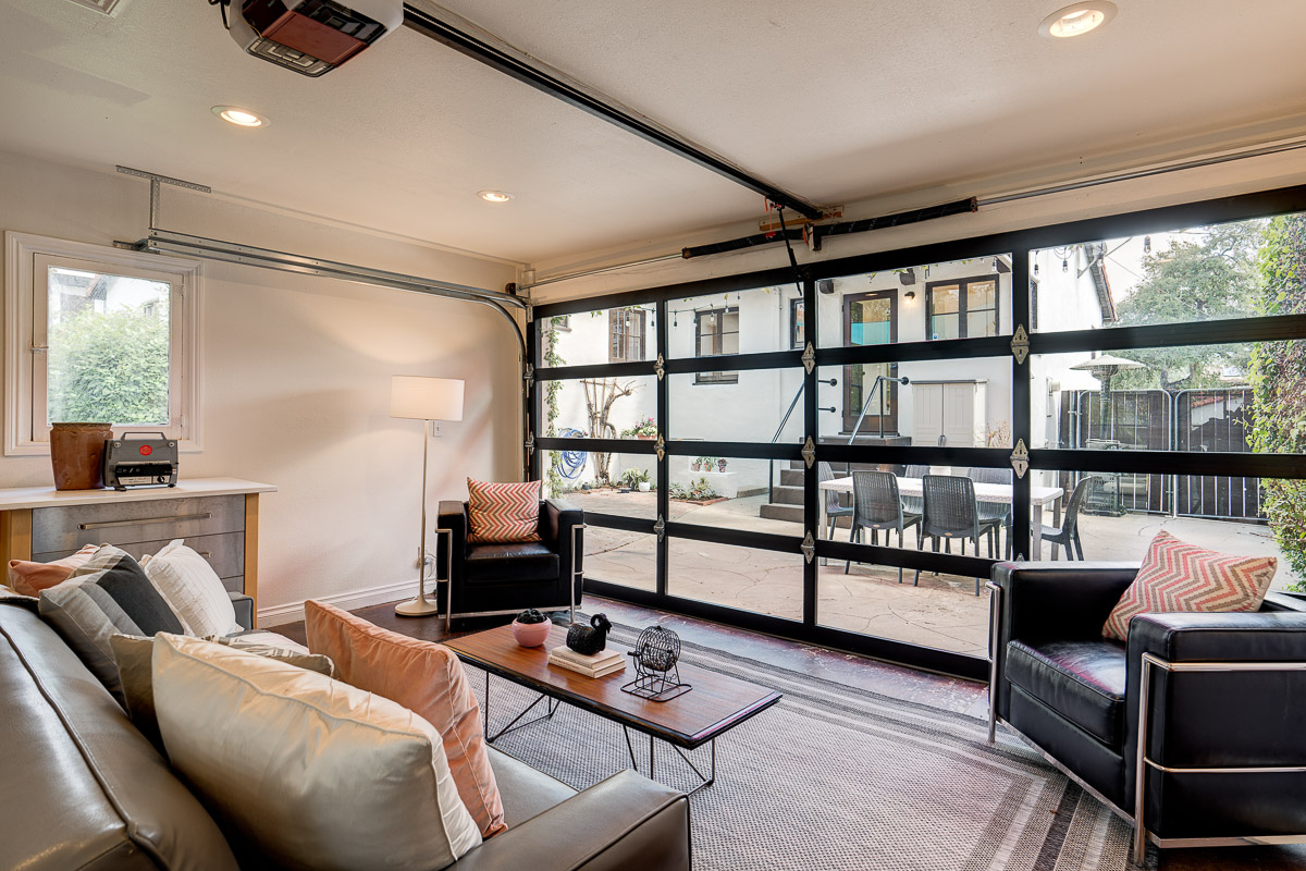 The rear of the house opens out to the step down patio and yard that has numerous areas for relaxing under the stars or for entertaining. Just behind the outdoor dining area is the dual purpose, fully finished garage that has a high-end, glass paneled door allowing the space to be used as a bonus office or workout room or as a stunning showplace for your vehicles. The deep 10,518 SF parcel, with tall, old-growth trees, offers a feeling of space and quiet that allows for limitless possibilities!