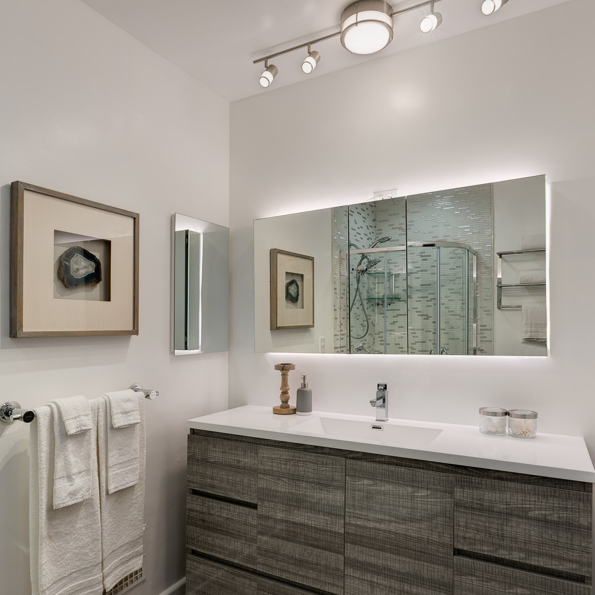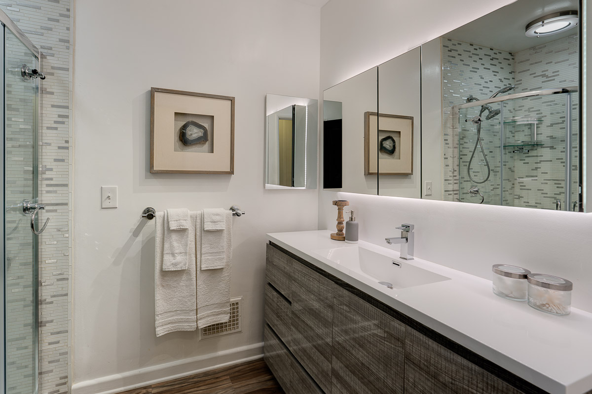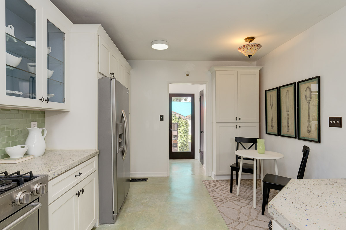 The rear of the house opens out to the step down patio and yard that has numerous areas for relaxing under the stars or for entertaining. Just behind the outdoor dining area is the dual purpose, fully finished garage that has a high-end, glass paneled door allowing the space to be used as a bonus office or workout room or as a stunning showplace for your vehicles. The deep 10,518 SF parcel, with tall, old-growth trees, offers a feeling of space and quiet that allows for limitless possibilities!